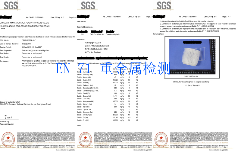 EN 71-3:1994+A1:2002-Toxic Elements Test (8 Toxic Elements Results) 8種有毒金屬含量測(cè)試:(鉛、鎘、鉻、砷、鋇、貢、硒、銻);